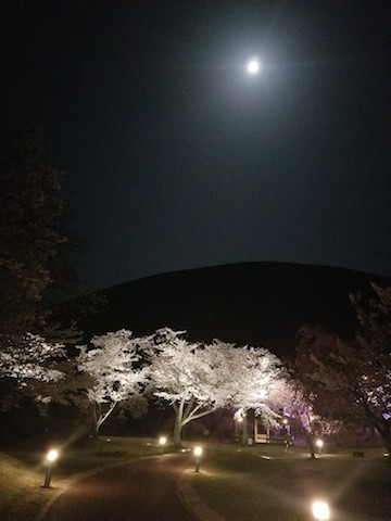 以前からこのタイミングで一度行ってみたかった「さくらの里」へ。 大室山山麓にあり、40種1500本の桜が植えられています。 昼間ではなく、夜桜のライトアップを見てきました。