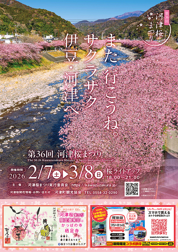 伊豆に春を告げる恒例の催し「河津桜まつり」の季節がやってまいりました。2026年は2月7日(土)より開催されます。